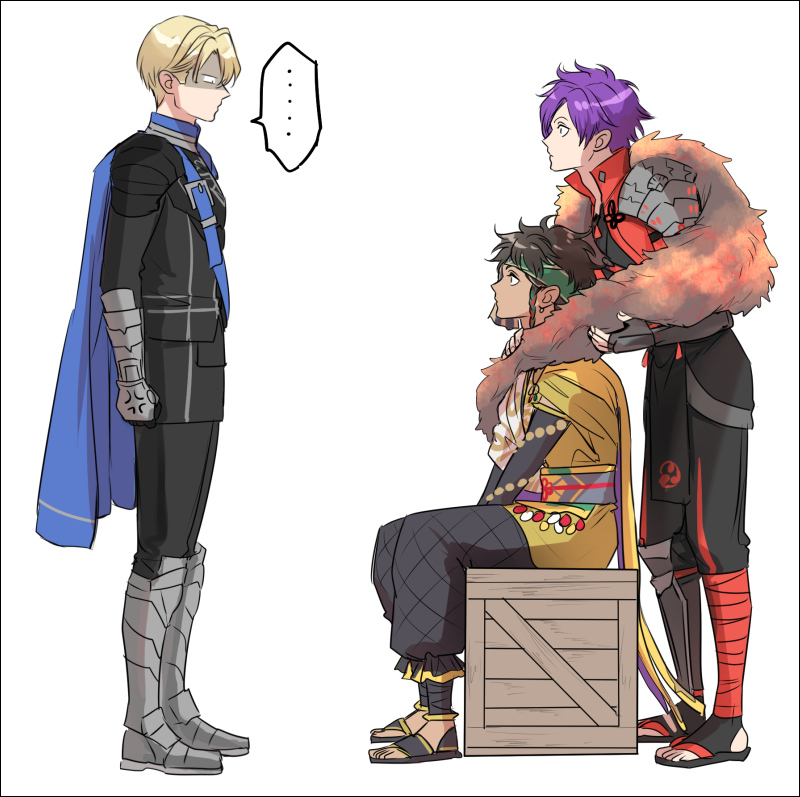 ディミクロ+シェズクロ 忍者シェズの服は暖かいらしいから寒そうな格好の風クロードに毛皮を巻いてあげて欲しい。 忍者シェズと風クロードのエフェクトの色が黄色(金色)と緑でお揃いで、被弾絵の背中向けたポーズがお揃いで、水着のサングラス飛竜に続いてまたお揃い。 ディミの嫉妬が止まらなくなるわ(笑)